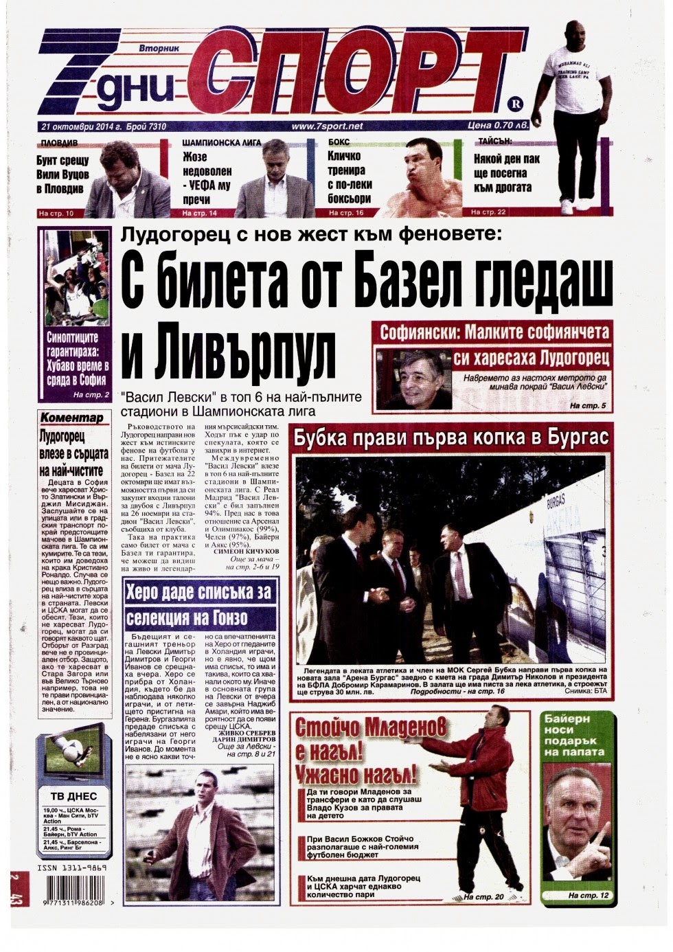Vestnici I Spisaniya Vestnik 7 Dni Sport 21 Oktomvri 2014 G