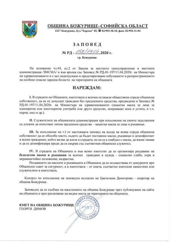 Zadlzhitelno Nosene Na Maski V Obshina Bozhurishe