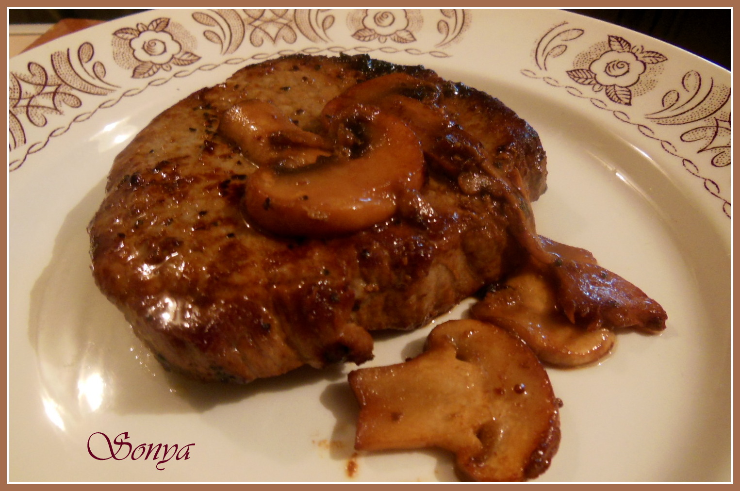 телешки медальон с гъби